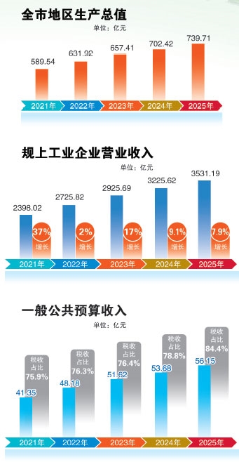 2025年地区生产总值实现739.71亿元,同比增长6.5%。