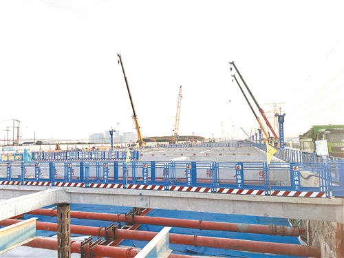 高铁苏州北站快速联络道东连接线工程,是苏州高铁北站综合交通枢纽改扩建的关键配套工程,建成后将大大提升高铁北站周边路网通行效率。近日,在由江西建工集团承建的项目施工段现场,大型机械有序作业,智能监测设备实时运转。“这个项目主线隧道与匝道衔接区存在超宽基坑群,最宽处达76米,总土方量约130万立方米,属于超大、超宽、深基坑工程。”该项目负责人陈汴介绍,江西建工二建公司在市政隧道、桥梁管廊等领域拥有成熟经验,项目中保通道路建设与交通导改同步推进。