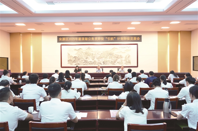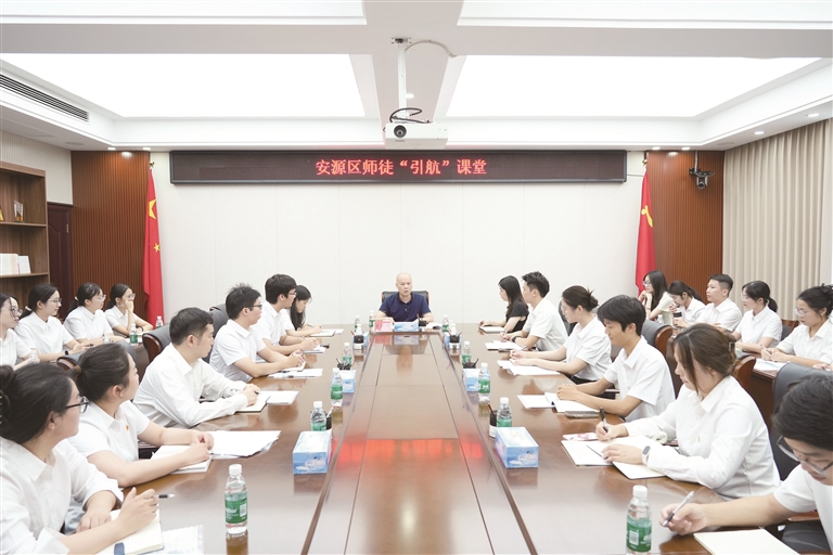 年轻干部培养如同精心育苗,离不开长远布局、悉心耕耘。成长成才恰似赛场练兵,需要搭建平台、磨砺摔打。安源区高度重视年轻干部培养,实施师徒“引航”计划,有计划地将政治素质好、有发展潜力的优秀年轻干部放到关键吃劲岗位、艰苦复杂环境、重大斗争一线去磨砺锻炼,通过互派交流、挂职锻炼、参与重大项目建设等方式,让他们在实践中学真本领、练硬功夫。加强专业化能力培训,依托安源路矿工人运动纪念馆等红色教育阵地,以“老带新、强带弱”结对模式,推动资深干部与新入职公务员、选调生精准结对,通过政策讲解、业务帮带、红色实践引路,助力年轻干部快速完成角色转换、厚植红色情怀、提升履职能力。在此基础上,举办“安源红色故事我来讲”演讲比赛和践行“六大工程”演讲比赛等,让年轻干部同台竞技、展露身手,凝聚起投身安源发展的青春力量。“作为师徒‘引航’计划学员,我刚踏入基层岗位时,走村入户不知道如何跟老乡拉家常,项目现场协调也找不到门道。多亏导师带着我跑田间地头、盯工程进度,手把手教我工作方法。以后,我会跟着导师踏实学、扎实干,把基层的事办细办好,为安源发展出份力。”安源区高坑镇人民政府新录用公务员邬奕伦表示。