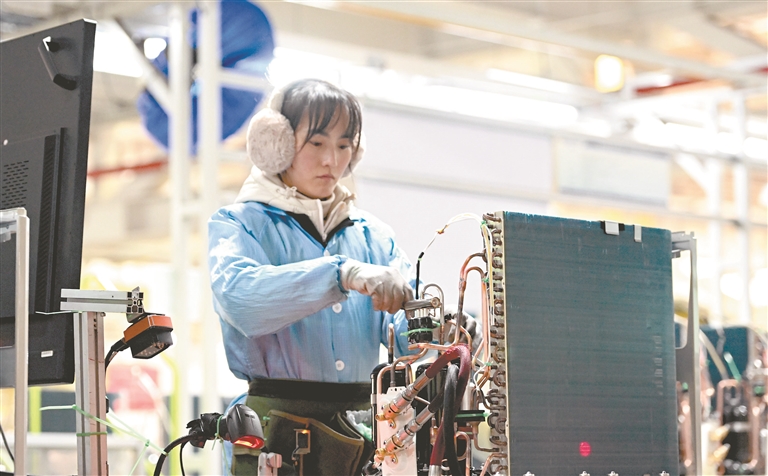 1月29日,在江苏省南京江宁高新技术产业开发区,工人在格力电器(南京)有限公司生产线上忙碌。新华社发(杨素平摄)