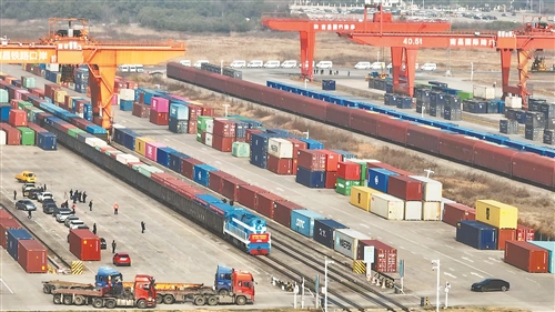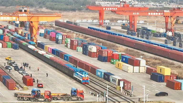 2月2日,一列满载大理石制品、棉布等货物的列车,从南昌国际陆港出发,并由霍尔果斯口岸出境,经里海运输至阿塞拜疆首都巴库,标志着江西首列跨里海中欧班列成功发运,较传统海运物流成本降低15%至20%。本报全媒体首席记者 李 劼摄