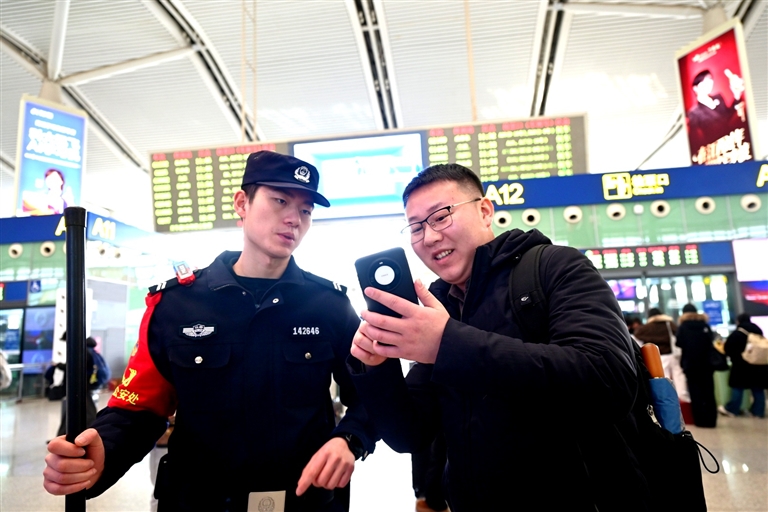 春运首日,中国铁路南昌局集团有限公司在保障运力、优化服务的基础上,着力为旅客打造有温度、有文化、有记忆的出行体验。景德镇北站“上线”智能引导机器人,不仅能够帮助旅客快速查询车次、检票口信息,还能为外国旅客提供流畅的引导服务,科技感十足;南昌西至北京西的G336次“江西非遗主题列车”车厢内,婺源鲤鱼灯、景德镇青花瓷瓶等元素为车厢营造浓厚的节日氛围,旅客还可体验傩面具彩绘。一系列形式新颖、互动性强的文化活动,让旅客的返乡之旅充满温馨与美好。