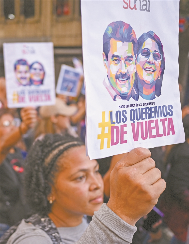 新华社记者3日在委内瑞拉首都加拉加斯看到,数千民众走上街头要求美国释放委总统马杜罗夫妇。