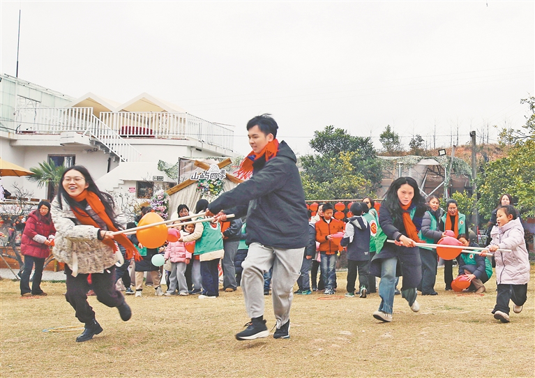 2月2日,遂川县心理健康志愿者协会举办亲子趣味活动,志愿者与孩子们笑意融融手拉手,合力完成运球跑、两人三足、彩虹伞颠球等趣味游戏。通讯员 李建平摄