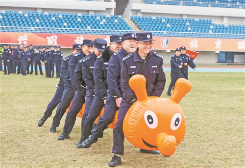 2月4日,瑞昌市公安局举办警营趣味运动会,200余名民警参加了“毛毛虫竞技”等趣味比赛。