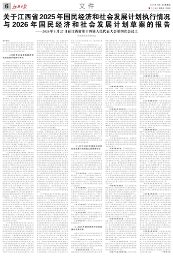 关于江西省2025年国民经济和社会发展计划执行情况与2026年国民经济和社会发展计划草案的报告