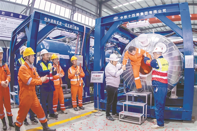 2月6日,在中铁十四局承建的甬舟铁路金塘海底隧道宁波侧施工现场,首台国产盾构饱和带压进仓设备“深海空间站”,成功实施75米深高压环境盾构进仓作业,标志着我国自主研发盾构饱和带压进仓技术成功应用,填补了国内技术空白,为未来深埋跨海隧道建设、深层地下空间开发积累了关键技术储备。