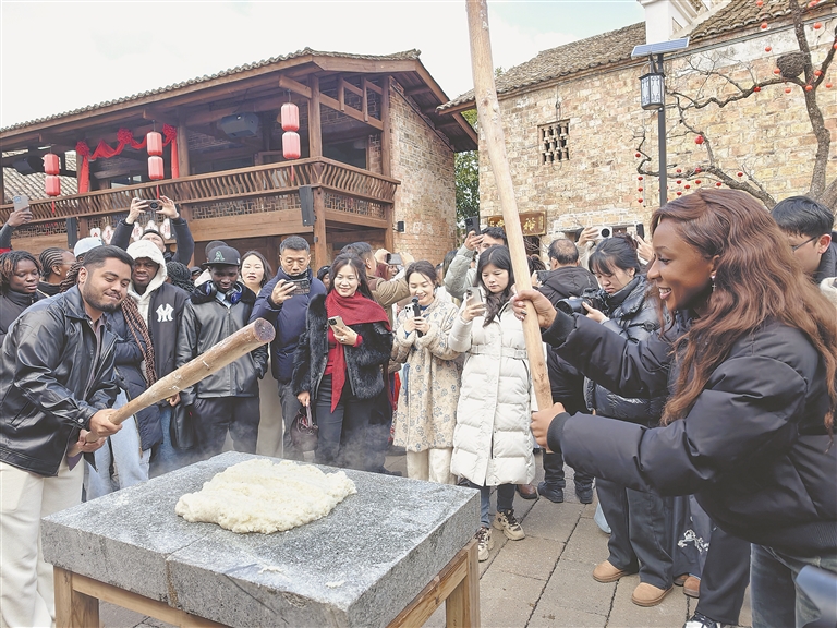 2月7日,分宜县在介桥古村举办“2026家乡年之我在江西过大年”主题文化活动,邀请江西工程学院、新余学院的外国留学生,与当地村民一同逛古街、写春联、打糍粑,体验民俗文化,感受新春年味。 特约通讯员 袁建兵摄