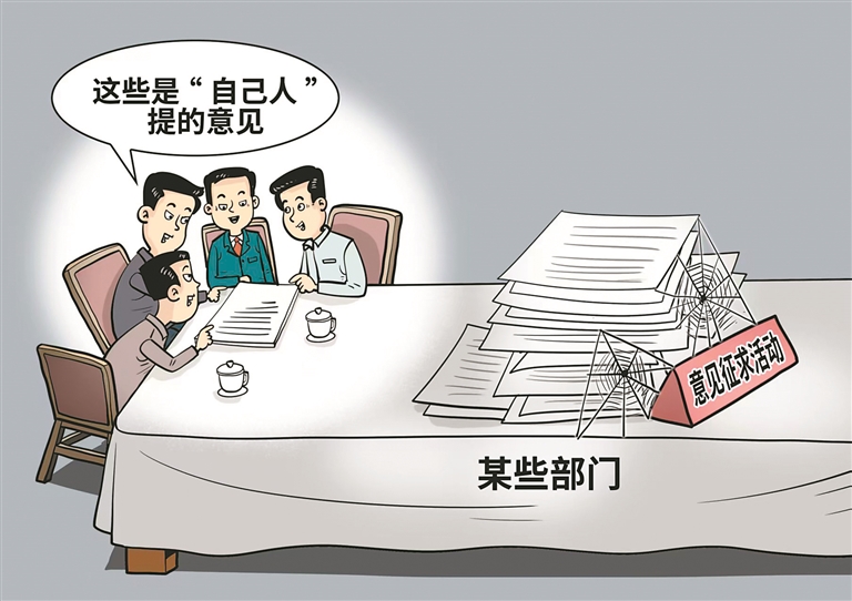 岁末年初不少部门和单位纷纷开展意见征求活动,这本应是倾听民声、校准决策的好作法,却出现了“变形走样”的形式主义问题:有的让把意见发至指定邮箱,而邮件却长期处于“收件人未读”状态;有的搞“过滤式”征求,只找“自己人”,在封闭的小圈子内完成“意见统一”;有的是“甩锅式”征求,表面问计于民,实则是为了万一决策失误,能用“已征求意见”为由推卸责任;还有的忙着“赶工期”,周五发通知、周六就反馈……这些做法消解了群众的参与热情,背离了“问计于民”的初衷。