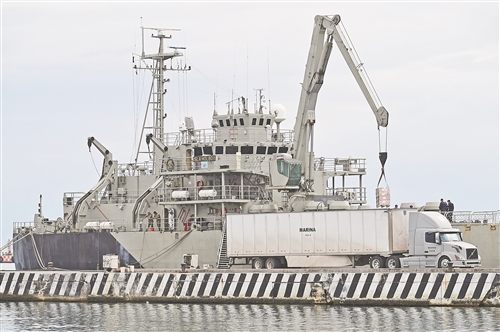 2月6日,在墨西哥韦拉克鲁斯港,人道主义援助物资被装进舰船。墨西哥外交部8日发布公告说,墨西哥政府当天派出两艘海军舰船,向古巴运送人道主义援助物资。公告称,两艘军舰从墨西哥东部韦拉克鲁斯港启航,运载超过814吨食品和生活物资前往古巴,以援助当地民众。新华社/路透