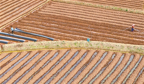2月6日,广昌县盱江镇赤岸村的一处种植基地,种植户在松土浇水、起垄覆膜,为下一步轮作种植农作物打好基础。立春过后,各地农民抢抓农时,开展翻耕、育苗等农事,田间地头一派繁忙景象。特约通讯员 朱海鹏摄