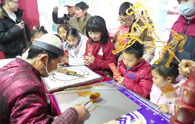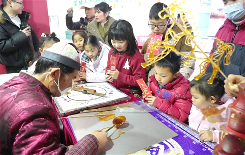 2月10日,永修县“文明实践迎新春 多彩活动暖人心”文明实践活动现场,非遗代表性传承人用麦芽糖制作马年生肖糖画,让孩子们近距离感受传统民俗魅力。 本报全媒体记者 杨 静摄