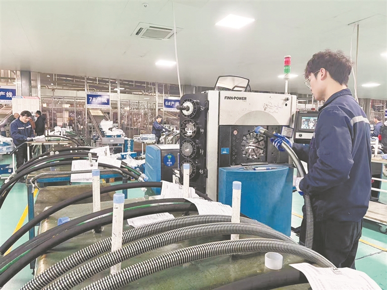 作为国内规模最大的液压软管接头连接件生产基地,今年以来,该公司立足自身产业优势,紧扣市场需求,从市场拓展、产品创新、产能保障等方面发力,1月实现营收6000多万元。“从当前形势来看,公司2026年第一季度的订单保持稳定增长,已排产到了6月,目前正在加紧赶制外贸客户卡特彼勒的急单。”该公司副总经理方蒋勇表示。