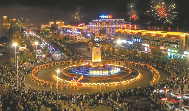 正月初三至初五,县城文化广场、武营广场同步上演巡游踩街、板龙闹春、烟花绽放等活动,成为人气核心、欢乐中心。