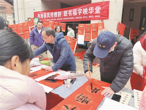 近日,红谷滩区生米街道政协工作联络组联合同泽社区党支部等,开展“墨舞春风传雅韵 联书福字映华堂”春联义写活动,200余名居民热情参与。现场,区政协委员携手社区书法、书画爱好者组成文化志愿队,现场挥毫书写寓意吉祥的春联、福字,以笔墨传递新春祝福。罗 琪摄