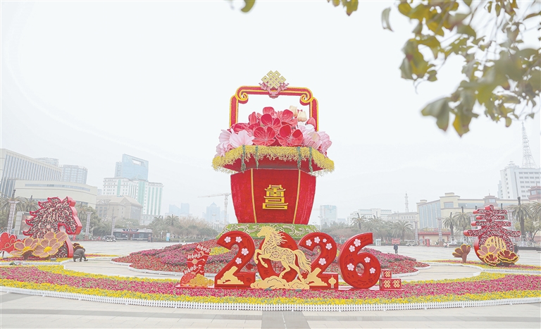 2月11日,南昌八一广场上的“骏马迎春”巨型花坛洋溢出浓浓的新春气息。据了解,花坛占地1369平方米,高13.8米,由4.2万盆花卉搭配而成。 本报全媒体记者 张翰林摄