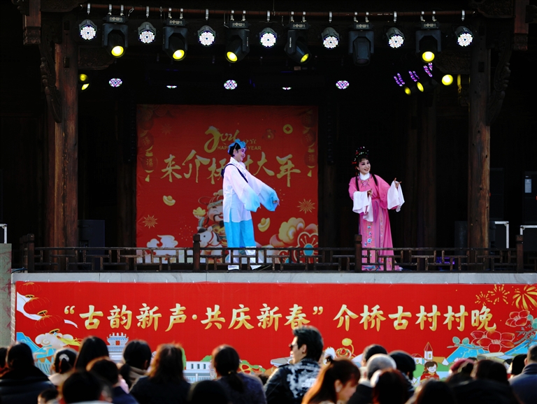 2月11日,分宜县分宜镇介桥古村举办村晚,演员们轮番登台表演,为当地群众送上一场文化盛宴。