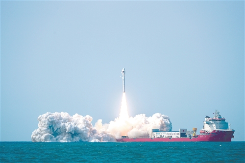 2月12日14时37分,我国太原卫星发射中心在广东阳江附近海域使用捷龙三号运载火箭,成功将巴基斯坦PRSC-EO2卫星、港中大一号卫星、电力红外卫星A星、数天宇星03-05星、空间环境监测卫星共7颗卫星发射升空,卫星顺利进入预定轨道,发射任务取得圆满成功。 新华社发(郭金祺摄)