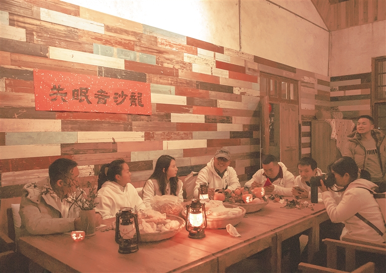 这个“年”像极了儿时的野炊。春联是驿友们提前一周接龙原创的,再一副副写好,爬着梯子贴满整座院子;先到的人穿着统一的《星火》文创卫衣,拎着《星火》马灯,热热闹闹鸣锣接后来者,连夜色都被热情的吆喝声点亮;每个人带来的食物都独一无二,人未到,已勾起一片“馋虫”,自制南瓜饼、现炸灯盏糕、荷包胙、碱水粑、粉蒸肉、于都青菜芋仔糊、寻乌酿豆腐、余干辣椒炒肉……江西美食派对是《星火》文学年的老传统。当三天两晚的线下相聚真正来临,一切活动以自然流淌的方式展开,共同营造出一种“比理想略低,比现实略高”的诗意生活。“或许,当文学不再孤芳自赏地高高在上时,文学精神反倒可能在世人心里镶嵌得更深。”《星火》杂志主编、作家范晓波在《未来的文学生活》里这样写道。