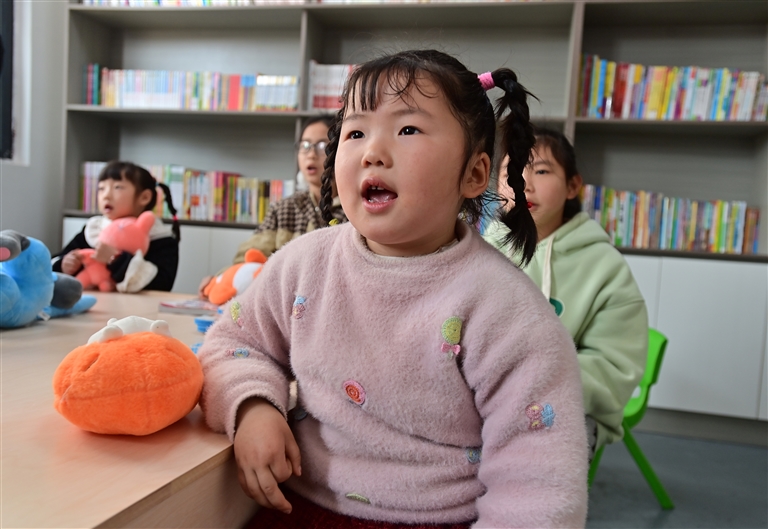 2月14日,在永丰县藤田镇岭南村新农家书屋,10余名小学生在此齐声背诵《滕王阁序》。据悉,该书屋是由江西日报社援建的文化项目,书屋启用首日举办的这次少儿读书活动,为今后常态化开展阅读推广活动拉开了序幕。本报全媒体记者 周 霖摄