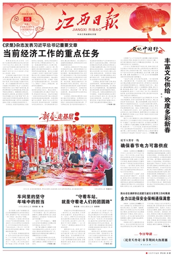 本报讯 (全媒体记者朱兆恺)2月15日,在吉安市110千伏遂川变电站,工作人员对核心设备开展拉网式全面排查;在抚州市特高压鄱阳湖换流站主控楼,值班人员紧盯实时数据,精准监控雅砻江至鄱阳湖±800千伏特高压直流电网的运行状态……春节期间,国网江西省电力有限公司近万名电力员工坚守岗位,全力确保电网安全稳定运行、电力可靠有序供应。