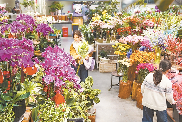 2月15日,在新余市一家花卉市场,市民正在选购年宵花,用鲜花装点美好生活。 本报全媒体记者 邹宇波摄