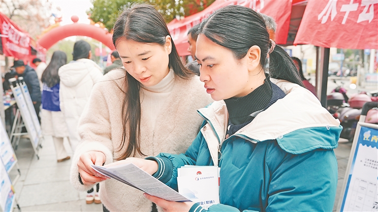 2月10日,永丰县就业之家大厅里暖意融融。电子信息发布大屏循环滚动着县域企业的招聘信息,薪资待遇、岗位要求、工作地点一目了然;一旁的纸质岗位信息发布栏前,不少群众驻足细看,指尖划过分类明晰的招聘板块,不时低声交流。