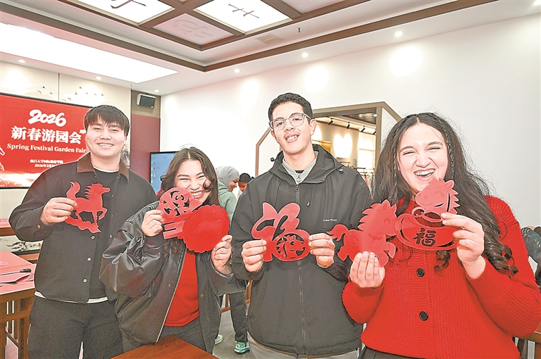 2月16日,南昌大学国际教育学院举办“留学南大情·寻味中国年”新春游园会。该校留学生与老师欢聚一堂,观看文艺节目,体验传统年俗,品尝地方美食,感受浓浓的中国年味。图为留学生展示自己的剪纸作品。