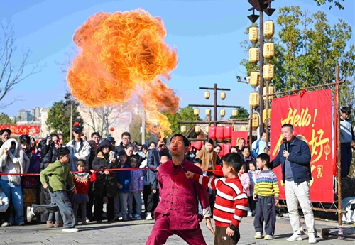 2月20日,分宜县介桥古村景区推出民俗表演、实景演出等系列文旅活动,吸引众多市民游客前来游玩打卡。本报全媒体记者 张翰林摄