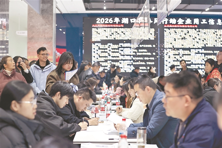 2月24日,湖口县举行2026年春风行动暨就业援助季就业招聘活动。招聘活动提供就业岗位4000个,精准对接春节期间返乡务工人员、高校毕业生等重点群体。 通讯员 吴 江摄