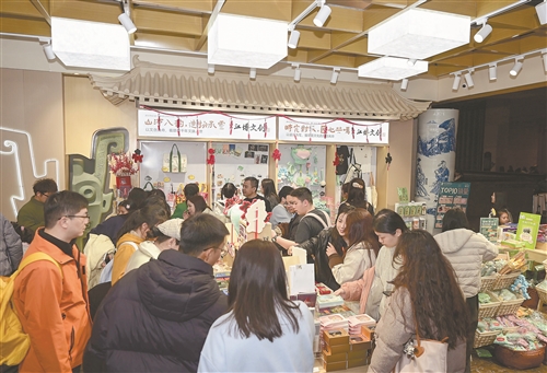 2月24日,在江西省博物馆内,众多游客和市民在观看展览和购买文创产品。春节假期,该馆推出由特色展览、趣味互动、文创体验等构成的“博物馆里过大年”新春文化大餐,观众达14.25万人次。 本报全媒体首席记者 李 劼摄
