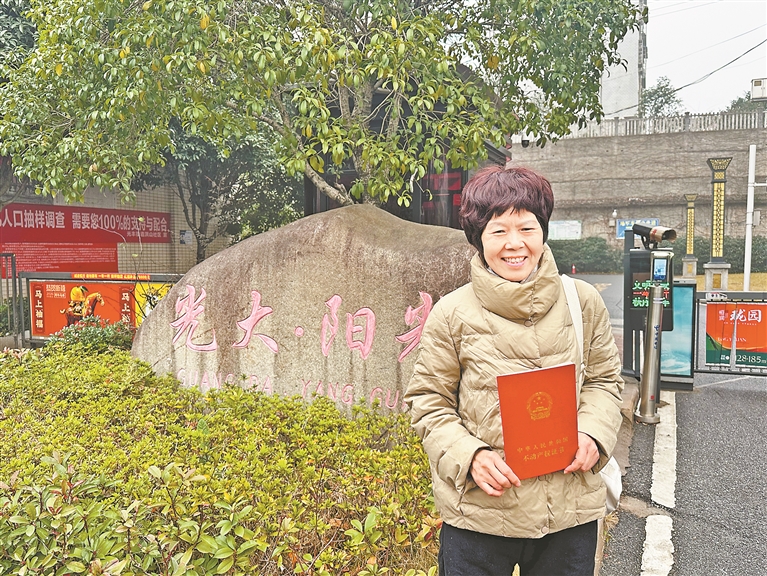 2025年,萍乡市针对不动产登记历史遗留问题,推出“三证分离”机制,把业主办证和开发商的责任脱钩,只要业主材料齐全,就能正常办理不动产证。“听到这个消息,去年8月,我赶紧提交了相关材料,不到一周就接到了领证通知。”贾秀兰说,拿到不动产证的那一刻,她非常开心,悬了11年的心终于落了地。