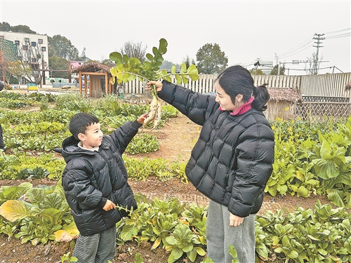 “以前担心农村幼儿园资源少,总纠结要不要送孩子到县城去上学。没想到幼儿园推出‘乡味育人’新模式,‘把乡野搬进学校,把课堂放在户外’的办学理念,给了我一个大大的惊喜。”胡钰是源南乡本地人,家中两个孩子都在该园就读。她欣喜地说,春天老师带着孩子们养蚕观察生命成长,夏天一起去菜园种菜、浇水,感受耕耘乐趣,秋天共同分享劳动喜悦。“现在孩子们认识了好多农作物和小动物,还变得特别开朗活泼。”