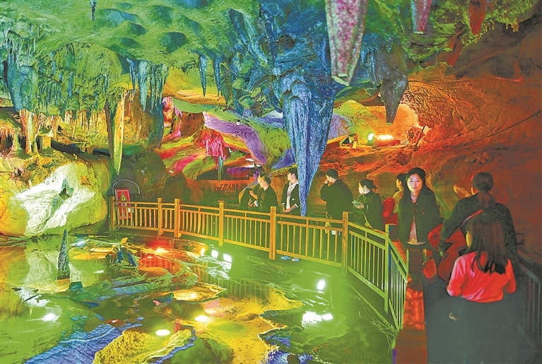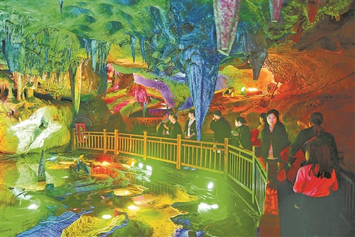 | 2月22日,在万年县神农源风景名胜区神农宫,游客置身于溶洞内,感受大自然的鬼斧神工。本报全媒体记者 洪子波摄 |