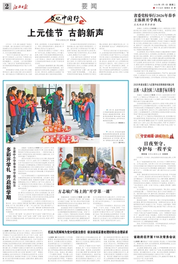 本报讯 (全媒体记者李芳)近日,全省中小学及幼儿园陆续迎来2026年春季开学季,各校(园)精心策划的开学特色活动亮点纷呈。一场场有内涵、有温度、有特色的活动,既为校园注入蓬勃生机,又为同学们播下了希望的种子。