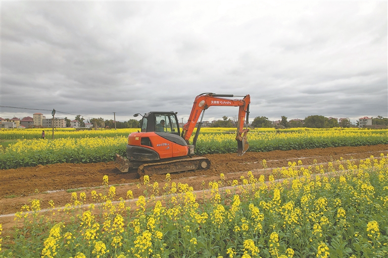 2月27日,泰和县万合镇高樟村,村民驾驶农机开沟整地,准备种植竹篙薯。