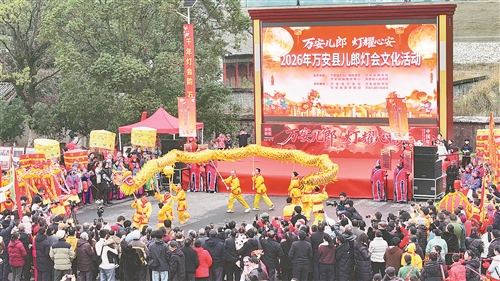 3月3日,“万安儿郎・灯耀心安”2026年万安县儿郎灯会在城区举行。万安儿郎灯融合祭祀、祈福、民俗表演等传统元素,锣鼓喧天、热闹非凡。通讯员 林海宾摄