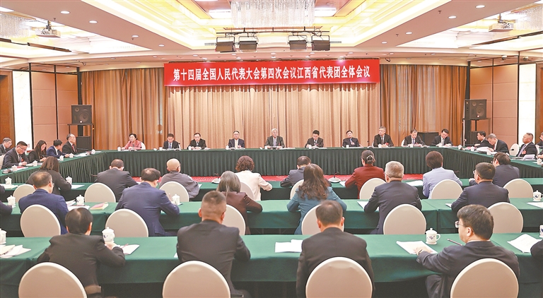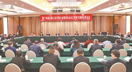本报北京讯 (特派全媒体记者魏星、张武明)3月3日下午,十四届全国人大四次会议江西代表团在北京住地举行全体会议。