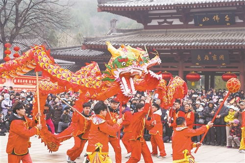 3月3日,演员在山东省济南市举行的“泉舞倾城 灯火元宵”传统舞蹈展演活动上表演舞龙。当日是农历正月十五,各地举办丰富多彩的活动,欢庆元宵节。 新华社记者 朱 峥摄