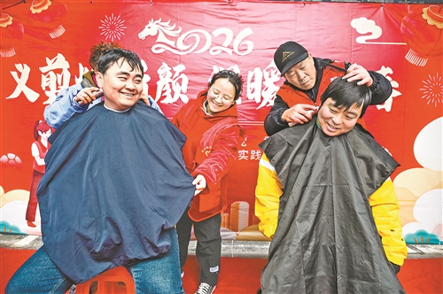 春节前夕,一场“暖‘新’更暖心”主题活动在驿站上演。理发师为骑手免费剪发,摄影师用镜头定格下他们的幸福笑容,商户端来热气腾腾的糖水,驱散寒意。