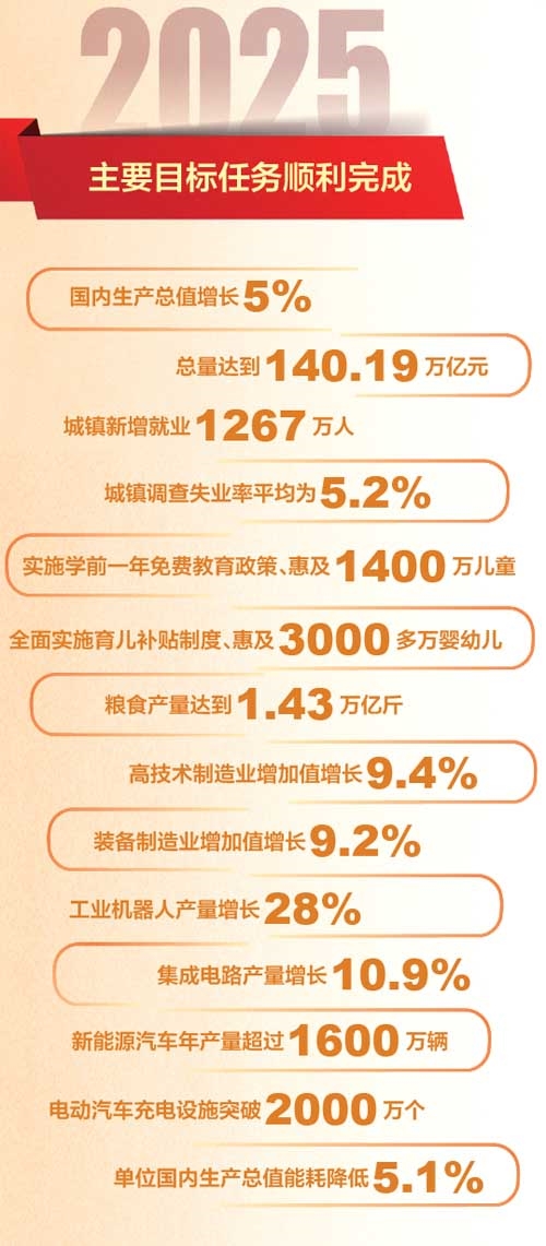 国务院总理李强5日在政府工作报告中指出,2025年是很不平凡的一年。党的二十届四中全会胜利召开,擘画了未来五年我国发展的宏伟蓝图。我们隆重纪念中国人民抗日战争暨世界反法西斯战争胜利80周年,设立台湾光复纪念日,极大振奋民族精神、激发爱国热情、凝聚奋斗力量。面对国内外形势深刻复杂的变化,以习近平同志为核心的党中央团结带领全国各族人民迎难而上、奋力拼搏,坚定不移贯彻新发展理念、推动高质量发展,统筹国内国际两个大局,全年经济社会发展主要目标任务顺利完成,“十四五”圆满收官,中国式现代化迈出新的坚实步伐。