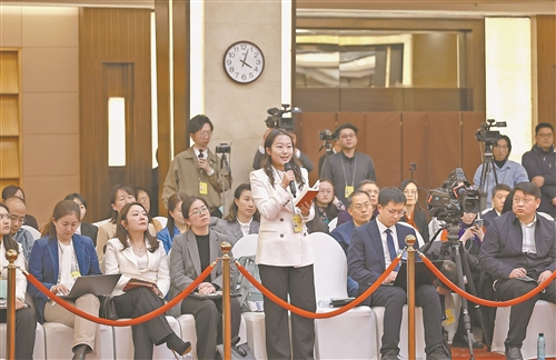 3月6日下午,十四届全国人大四次会议江西代表团举行全体会议,并向境内外记者开放团组。图为记者就关心问题提问。本报特派全媒体首席记者 海 波摄