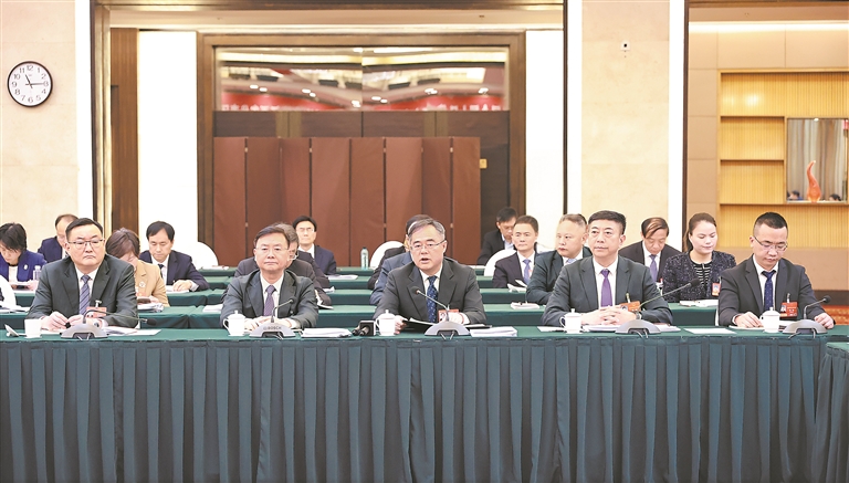 3月6日上午,十四届全国人大四次会议江西代表团举行全体会议,审查“十五五”规划纲要草案。 本报特派全媒体首席记者 海 波摄