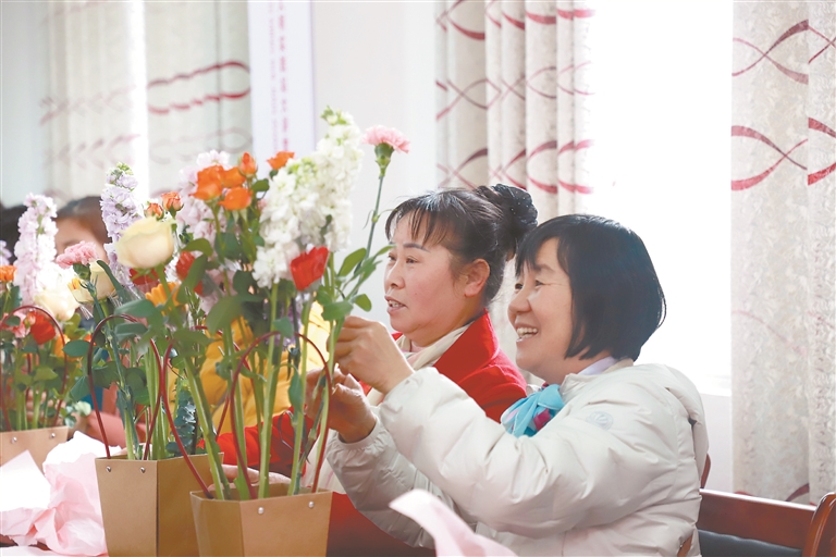 3月5日,安远县城南社区新时代文明实践站开展“巾帼绽芳华·花艺润心田”插花活动,喜迎“三八”国际妇女节。 本报全媒体记者 杨文斌摄