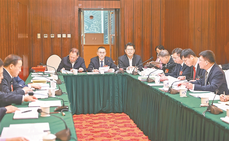 3月7日,十四届全国人大四次会议江西代表团在北京住地举行分组会议,审查计划报告和预算报告。本报特派全媒体首席记者 海 波摄