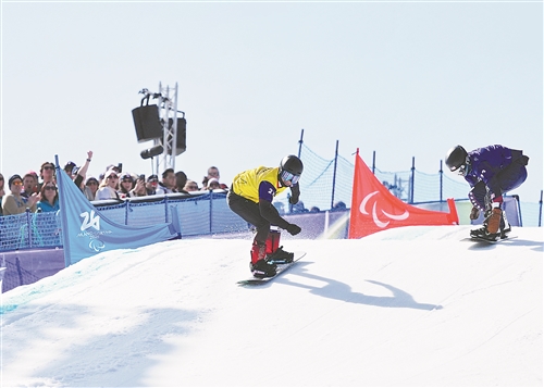 在科尔蒂纳的残奥单板滑雪赛场,中国队当日夺得两金。出发时一度落后的武中伟在男子障碍追逐LL1级大决赛中成功逆袭,本届冬残奥会开幕式中国代表团旗手纪立家在男子障碍追逐UL组比赛中实现卫冕。
