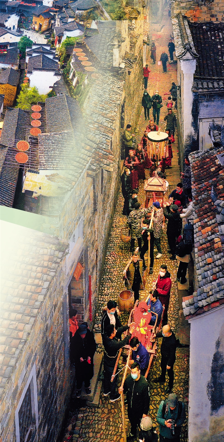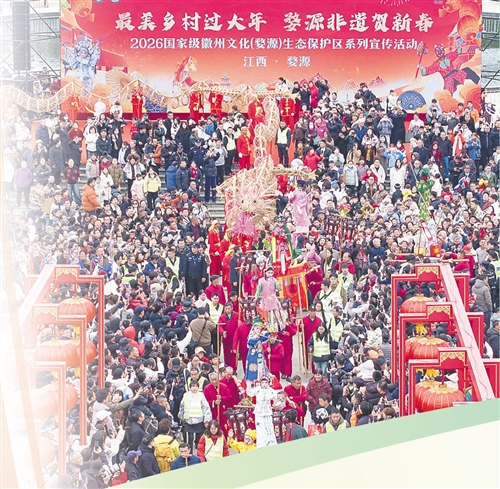 而在乐安县流坑古村,大年初一,村里张灯结彩,福字盈门,以“赏万家灯火 寻年味流坑”为主题的新春活动火热启幕。人群中,来自波兰的游客尤为瞩目,他们穿梭于古村巷陌和千年古樟林,参与状元巡游互动,品尝地道的豆腐乳和勺子饼。看来千年古村不但能吸引众多国内游客,而且能吸引远渡重洋的国际游客前来沉浸式体验中国年。在这个马年春节,这样的场景还在众多的江西村落上演,越来越多游客走进江西乡村,沉浸于自然山水,体验乡土文化,感受生活温度。