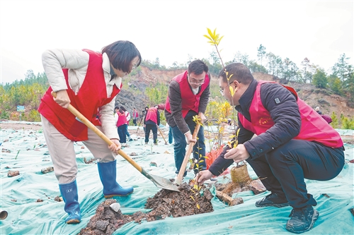 近年来,会昌县牢固树立“绿水青山就是金山银山”的发展理念,严格落实林长制,全县森林覆盖率稳定在80%以上。图为3月10日,会昌县小密乡组织党员干部、驻村工作队、志愿者开展义务植树活动。通讯员 刘兆春摄