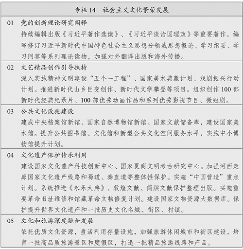 推动文化遗产系统性保护和统一监管,推进管理资源整合,建立文化遗产保护督察制度。深入实施中华优秀传统文化传承发展工程,构建中华文明标识体系。实施中华文明探源和考古中国工程。加大世界文化遗产、古迹遗址、革命文物、馆藏文物、文化景观等保护力度,加强历史文化名城、街区、村镇有效保护和活态传承。建好用好长城、大运河、长征、黄河、长江国家文化公园,优化建设管理体制机制。强化档案文献遗产保护和古籍抢救性保护,加强中华典籍文献传承。提升非物质文化遗产保护传承水平,培育传承体验新场景。加强和改进地方志工作。(见图2)