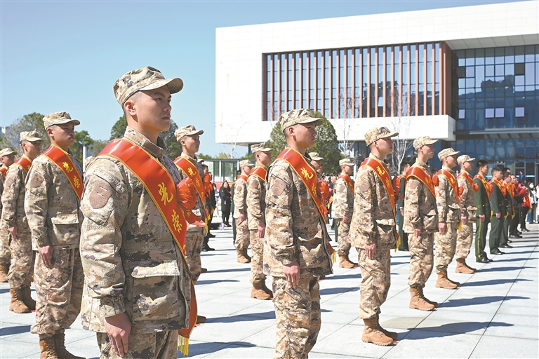 3月13日,会昌县举行2026年上半年新兵入伍欢送大会。100余名优秀青年身着戎装、肩披绶带、胸佩红花,踏上军旅征程。通讯员 华辛明摄